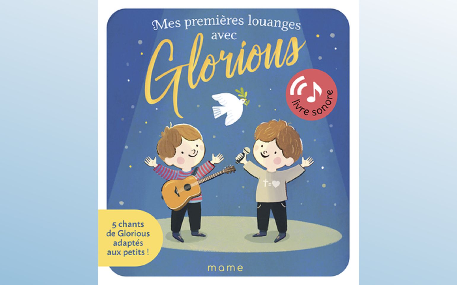 Retrouvez les chants du célèbre groupe de louange Glorious dans une version adaptée pour les petits. Avec des textes de méditation et de prière écrits par les compositeurs du groupe, ce livre sonore est un magnifique outil pour éveiller les plus jeunes à la foi et à la louange.